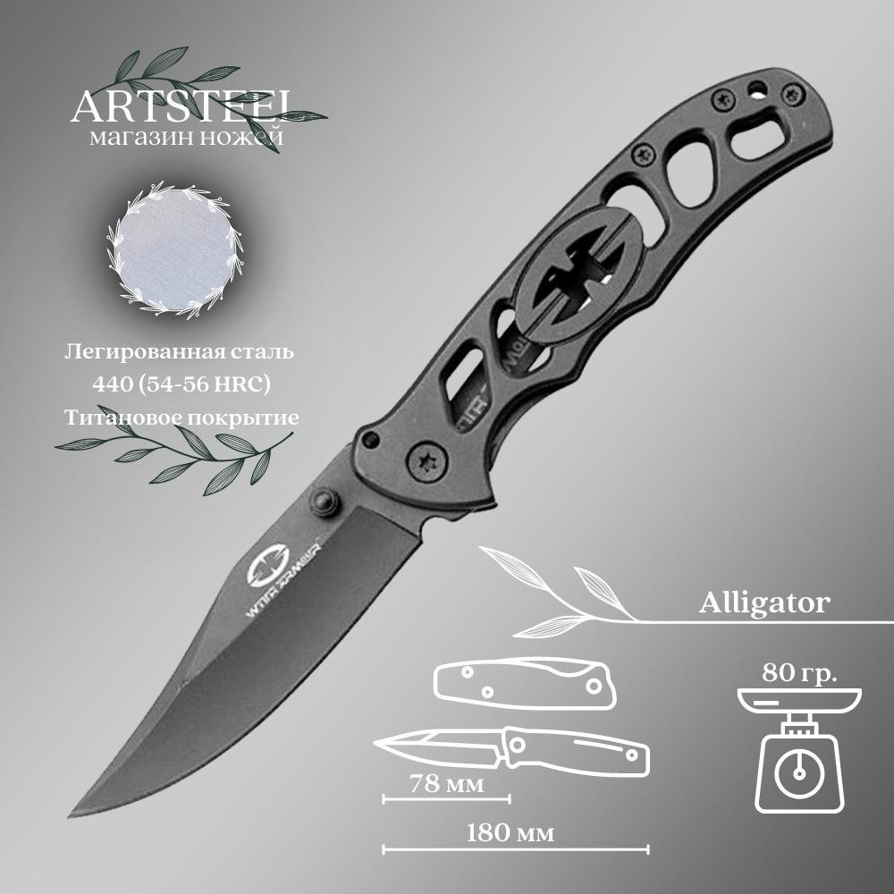 Складной нож Alligator, сталь 440, рукоять сталь WA-046GY