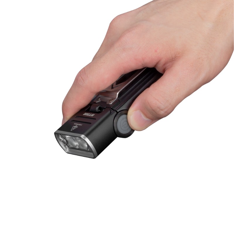 Все режимы могут работать только поочередно. Они вносятся в память фонаря, чтобы первым включался именно тот вариант освещения, который работал перед выключением. Управляются все варианты яркости и включение Fenix WT20R одной прорезиненной кнопкой на боковой стороне корпуса.