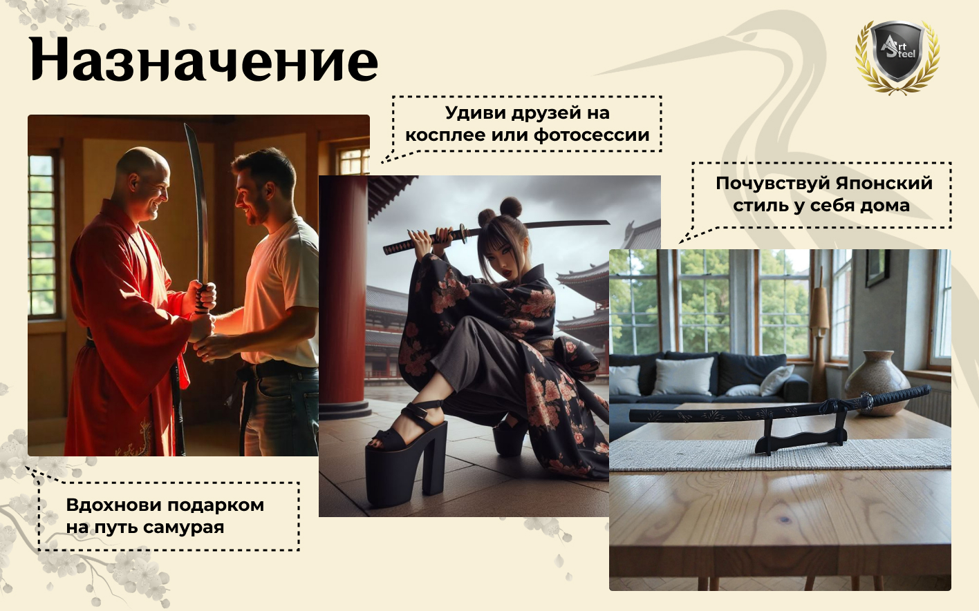 Такая катана будет эффектным сувениром или подарком для коллеги, мужа, брата, для человека, который ценит японскую культуру или увлекается косплеем.
