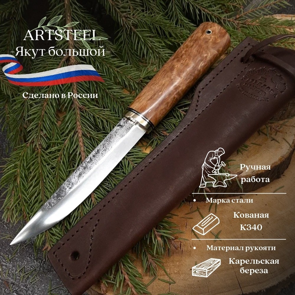 Нож Якут большой из стали К340, рукоять латунь ZK054-KS