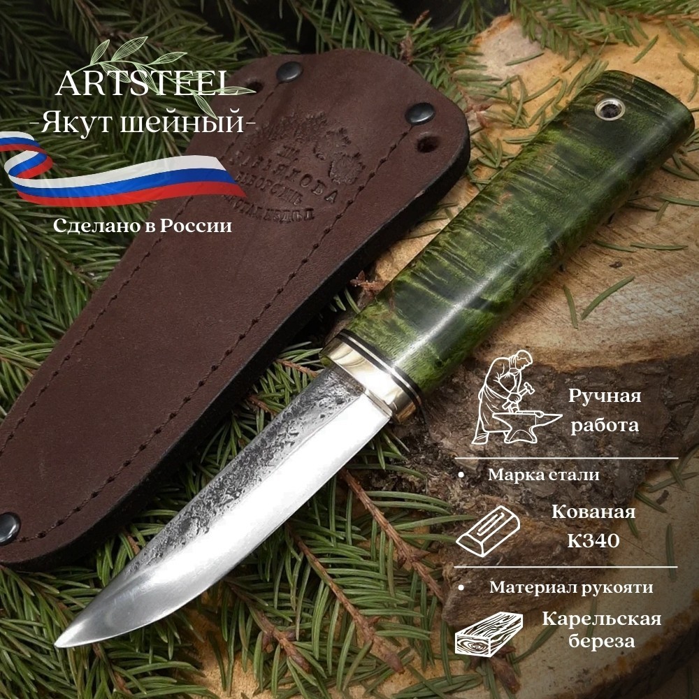 Нож Якут ШЕЙНЫЙ из стали К340, рукоять латунь ZK055-KSm