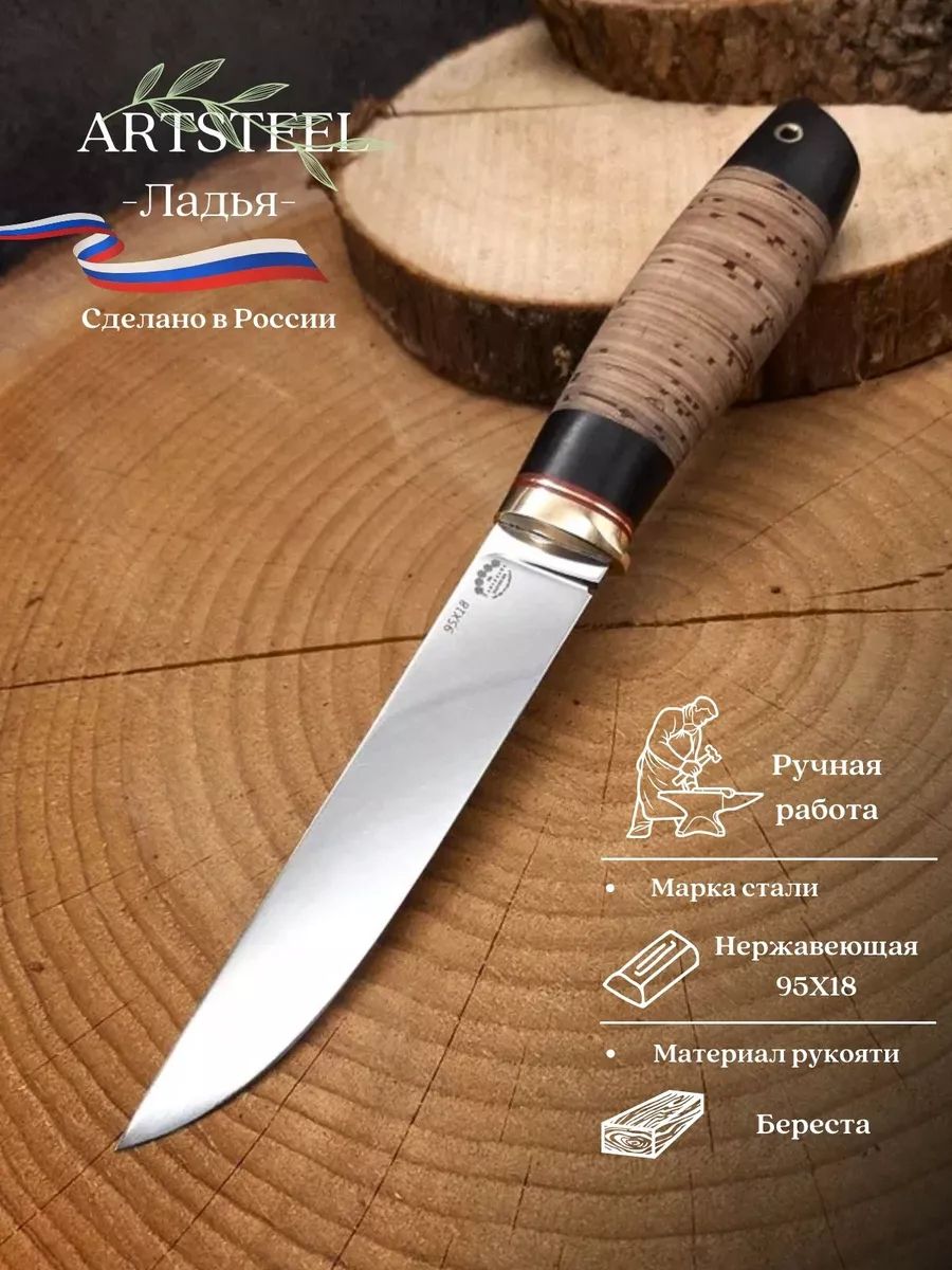 Нож Ладья из стали 95Х18, рукоять береста ZK085-9BR