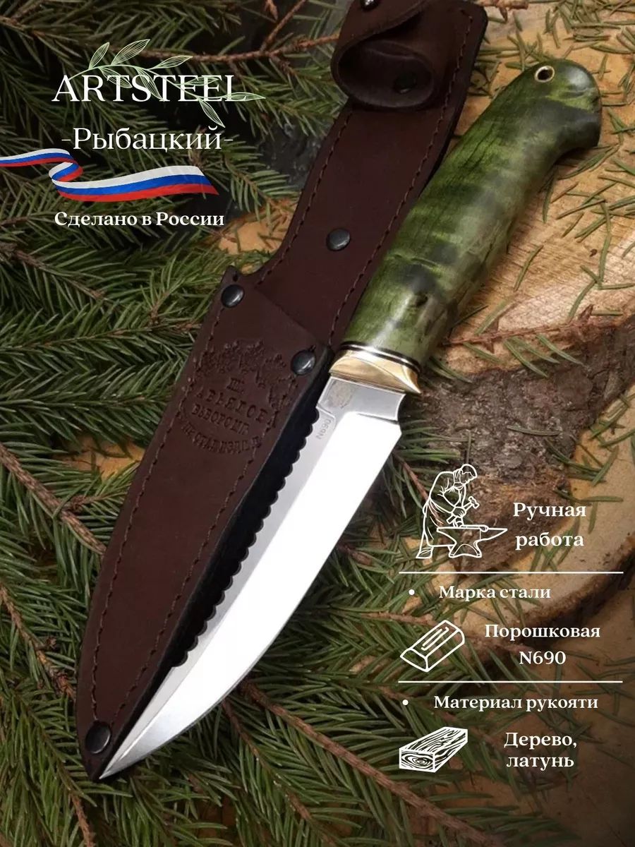 Нож Рыбацкий из стали N690, рукоять дерево, латунь ZK149-NS